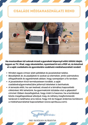 Ha mostanában Te is túl soknak érzed a képernyő előtt töltött időt, legyen az TV, iPad vagy okostelefon, nyomtasd ki ezt a PDF-et, és készítsd el ezt a saját családodra és gyerekeidre szabható médiahasználati rendet!